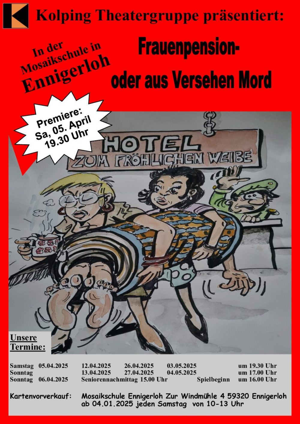 Vorverkauf in der Mosaikschule jeden Samstag 10-13 Uhr Gespielt wird auf der Bühne der Mosaikschule in […]