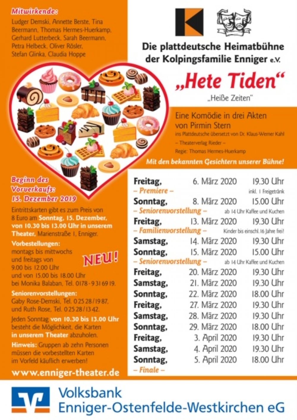 Der Kartenvorverkauf beginnt am 15.12,2019 von 10.30 Uhr bis 13 Uhr im Theater (Marienstraße 1, Enniger)