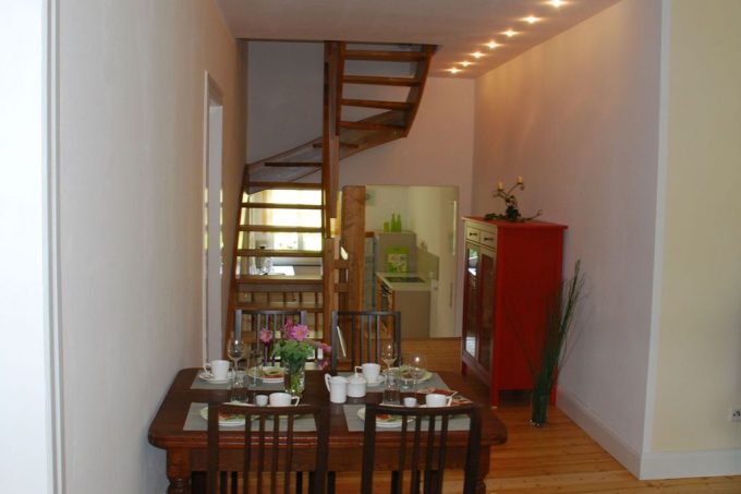 Jede Etage hat ein Bad mit Dusche und WC. Küche und Wohnung sind voll ausgestattet und lassen keine Wünsche offen, der Esstisch ist ausziehbar. WLAN steht Ihnen jederzeit zur Verfügung.