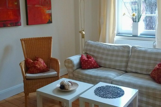 Die großzügigen 98 m² bieten auf 2 Etagen Schlafmöglichkeiten für 8 Personen in 4 Doppelzimmern und eine Schlafcouch im Wohnzimmer – auf Anfrage 2 weitere Schlafplätze – das gemütliche Wohnzimmer lädt zum Wohlfühlen ein.